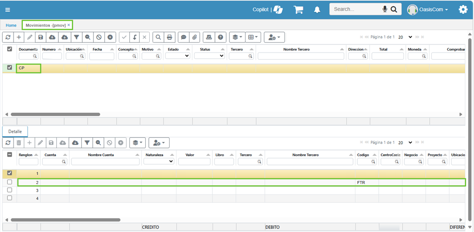 En el detalle del movimiento PMOV - Movimientos se encuentra el campo correspondiente al código, en el cual se asigna el tributo aplicable.