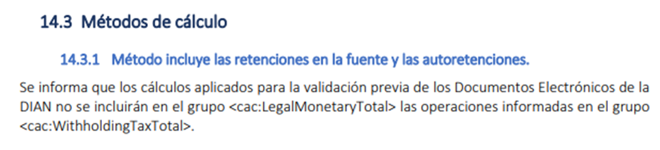 Los métodos de cálculo se encuentran en el Anexo Técnico de Documentos Soporte ante la DIAN, sección 14.3, específicamente en el apartado 14.3.1.
