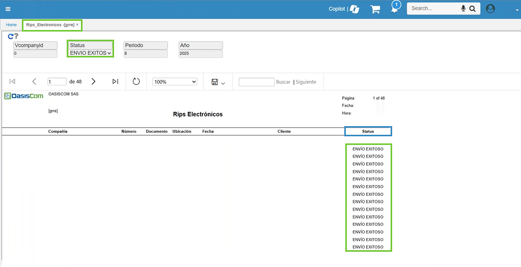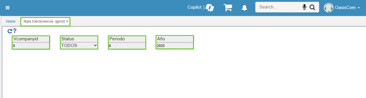 El acceso al reporte se realiza a través del aplicativo GRRE – Rips Electrónicos. Una vez ingresado, se visualizan los parámetros de búsqueda, en caso de realizar el filtro por estado se utilizan las siguientes opciones: