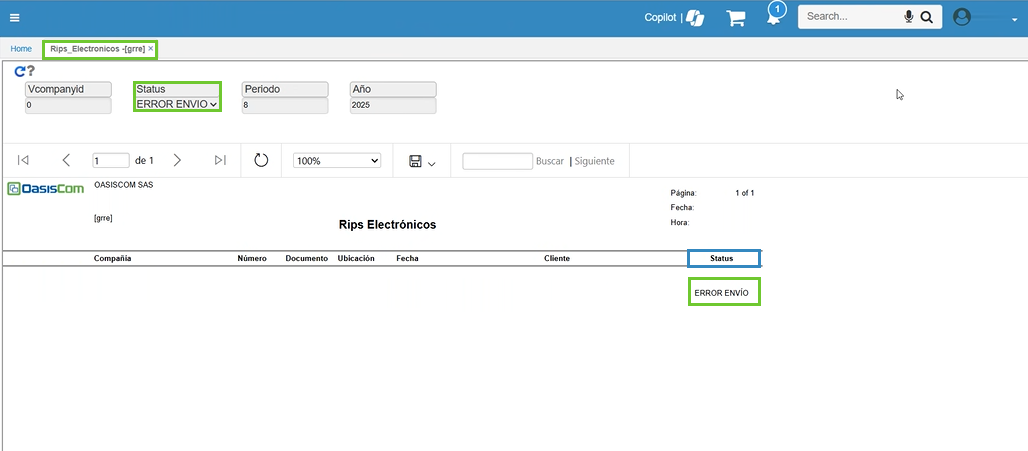En caso de identificar RIPS electrónicos con error envío, el responsable del proceso debe realizar las acciones correctivas necesarias, tales como la verificación y ajuste de datos, la revisión de conectividad o el reintento de transmisión, esto se verifica desde el aplicativo EBGENV – Envío. Una vez corregida la incidencia, se procede a reenviar el RIPS electrónico hasta lograr que quede en estado envío exitoso.