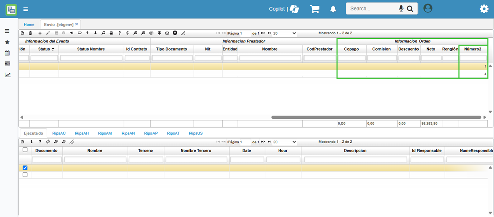 Se ha incorporado en el aplicativo EBGENV – Envío un nuevo botón denominado Nota de Ajuste, ubicado en la parte superior de la pantalla del maestro, en el panel de botones. Esta funcionalidad permite generar un nuevo documento que toma como base la información del documento FH (Factura Electrónica de Venta) y lo transforma en un documento FH (Factura Electrónica de Venta) con el concepto RN (Envío RIPS Notas de Ajuste).