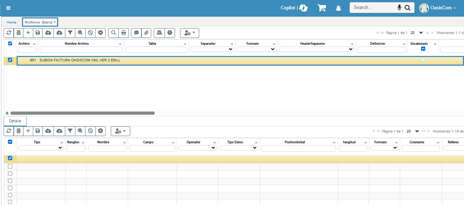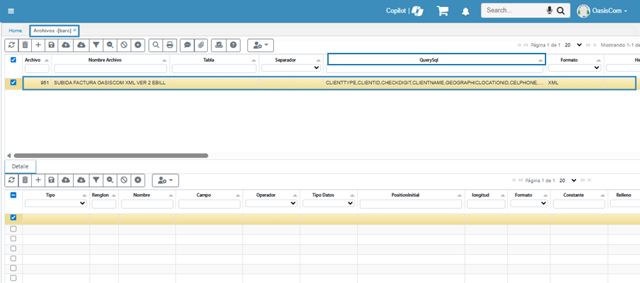 Para habilitar el proceso, se realiza la configuración del archivo 951 en el aplicativo BARC – Archivos, orientado a clientes que generan sus facturas en línea, este está asociado al BINT - Interfaces 951 para subir los archivos en formatos XML al sistema y así poder realizar el envío.