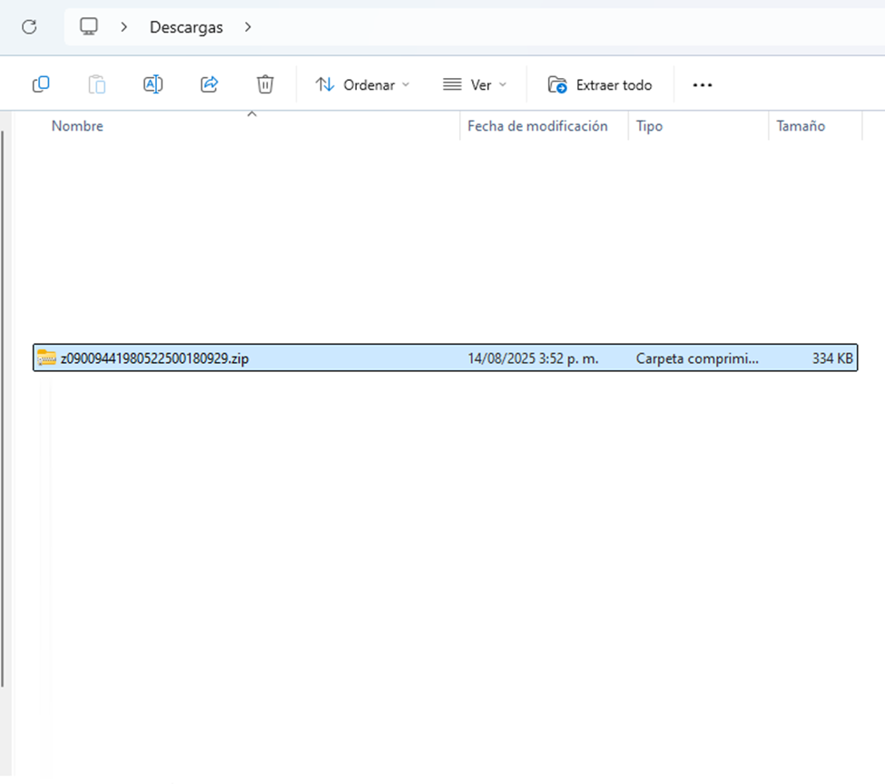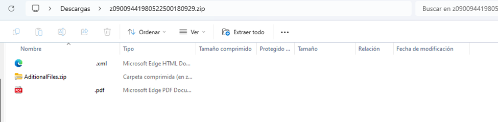 Al hacer clic en el botón Descargar AttachedDocument, el sistema permite acceder y descargar los siguientes archivos: