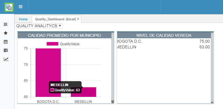 La aplicación Tablero de Calidad permite visualizar el análisis de calidad por ubicación. Esta aplicación se alimenta de la información ingresada en AANA - Análisis de Calidad.