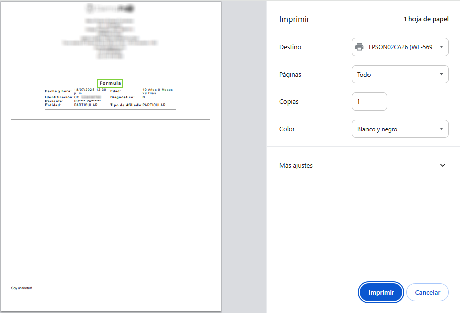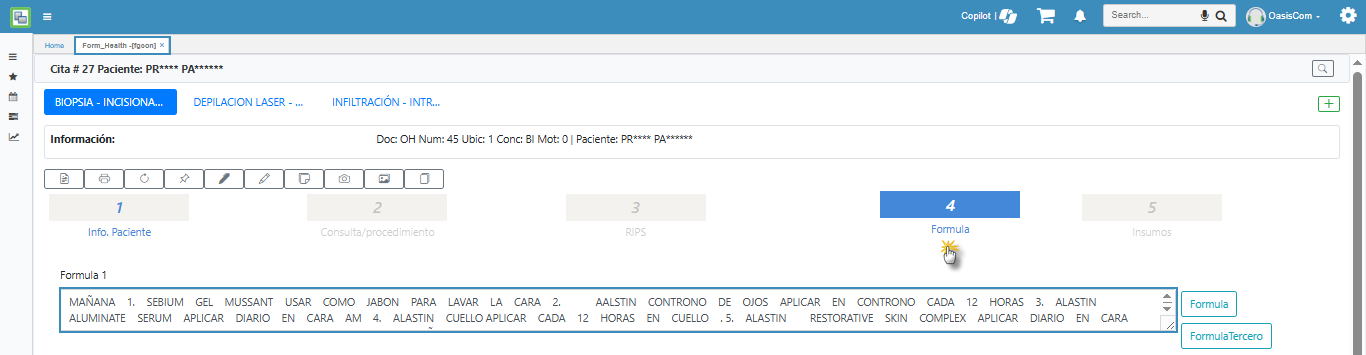 El botón Fórmula, genera un reporte de los medicamentos formulados al paciente.