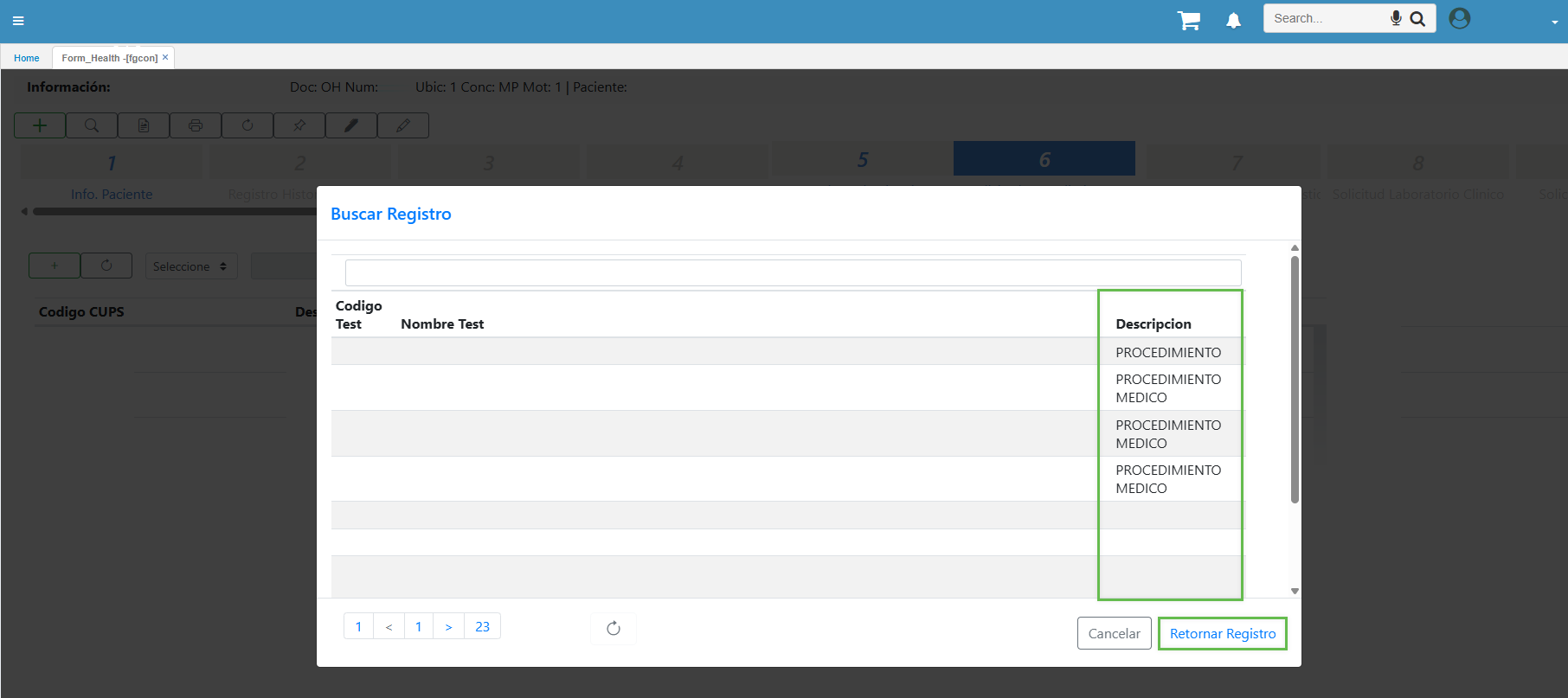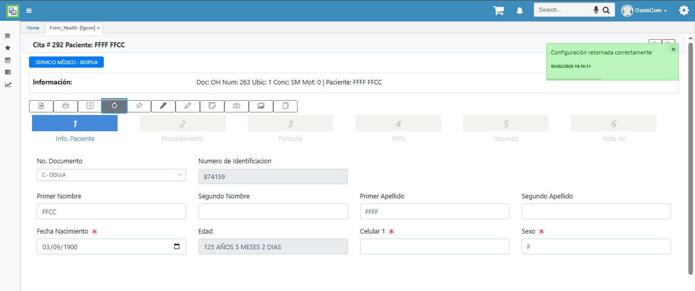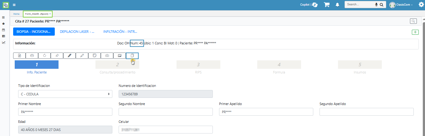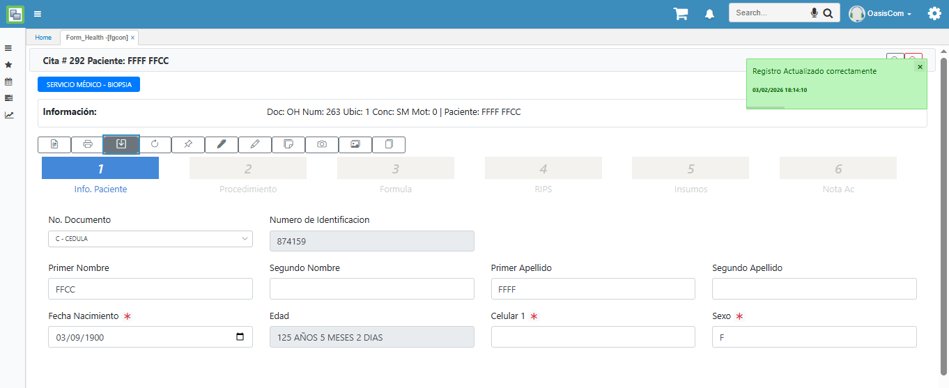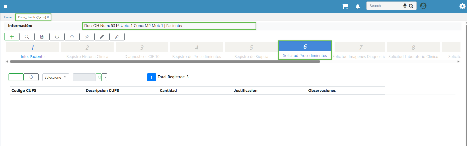 Nota: Al modificar el procedimiento, se genera un nuevo formulario en donde se requiere diligenciar nuevamente algunos datos del paciente y de la consulta.