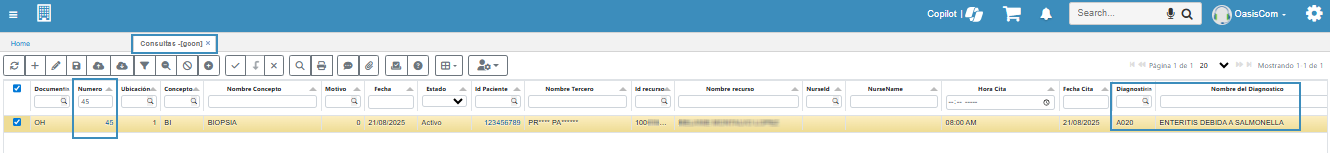 En el aplicativo GCON – Consultas se filtra con el número de consulta lo que permite visualizar el diagnóstico asociado a este.
