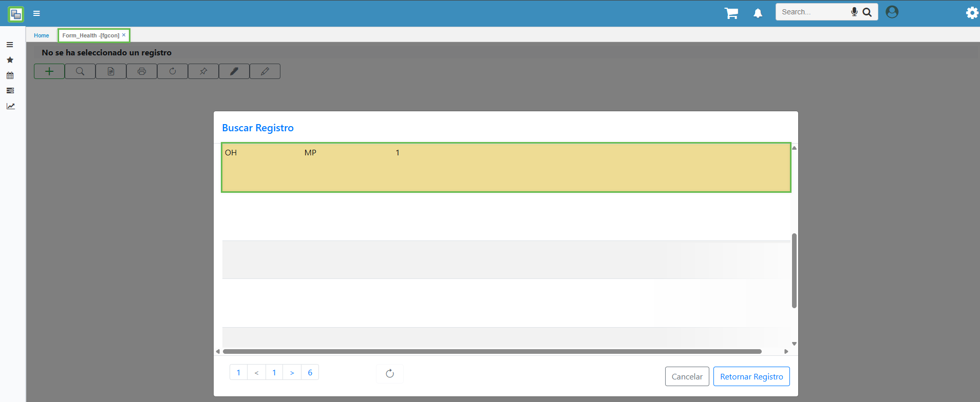 Al hacer clic en la opción Buscar, el sistema traerá un conjunto de registros. Dentro de estos, se debe localizar el registro que se desea modificar y, posteriormente, hacer clic en Retornar Registros para continuar con el proceso.