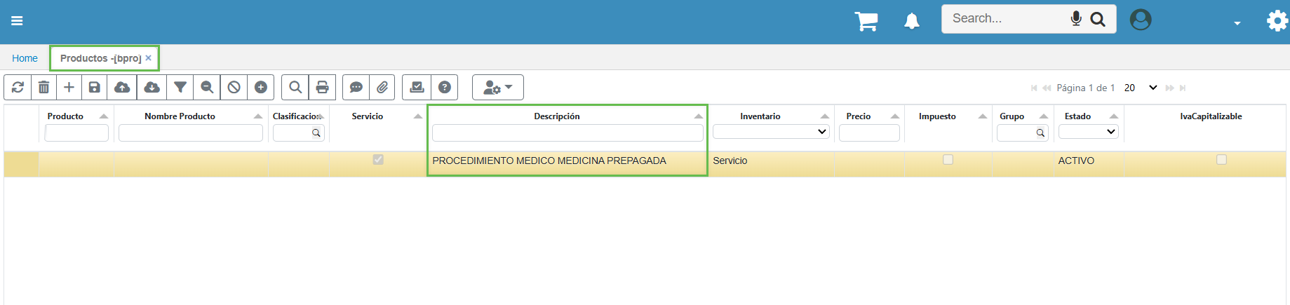 Permite la visualización de la columna de descripción al momento de abrir el zoom en el campo Solicitud procedimiento. se agrega una columna en la parte derecha de la visualización del zoom que muestra la descripción del producto, con el propósito de ofrecer un detalle más completo de la información disponible al momento de agregar un producto.