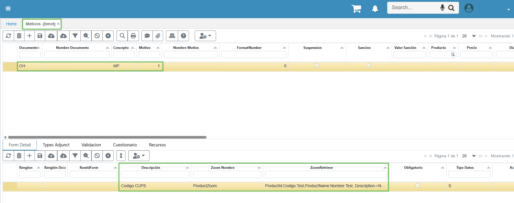 Para esto, inicialmente se debe parametrizar desde el aplicativo BMOT - Motivos, se filtra por documento OH, se pasa al Detalle y se activa el flag del Campo Replicate de los campos que requiero replicar de los formularios.