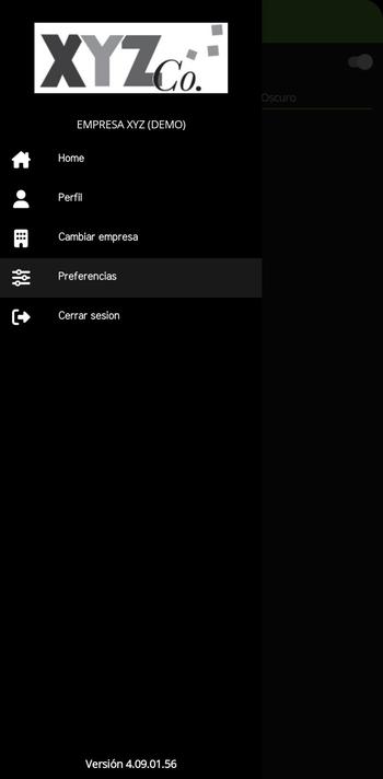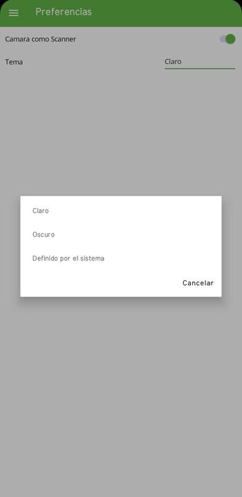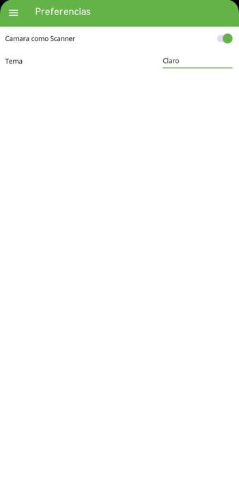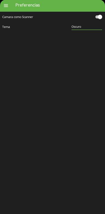 Preferencias: Aquí podemos indicar si queremos que el sistema habilite la cámara (según el funcionamiento de las opciones a trabajar) o cambiar el tema de la aplicación móvil.
