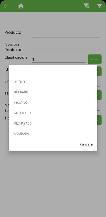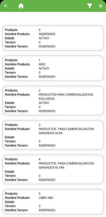 Regresamos al listado de productos, donde podemos Filtrar y Agregar registros (botones en la parte superior derecha).