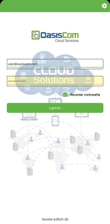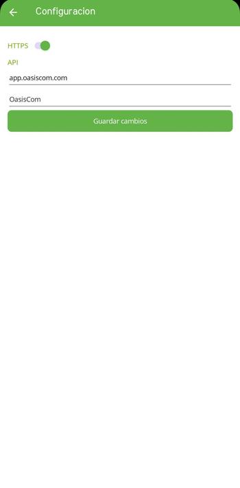 Al iniciar la aplicación OasisCom Móvil, debemos configurar a qué ambiente vamos a conectarnos.